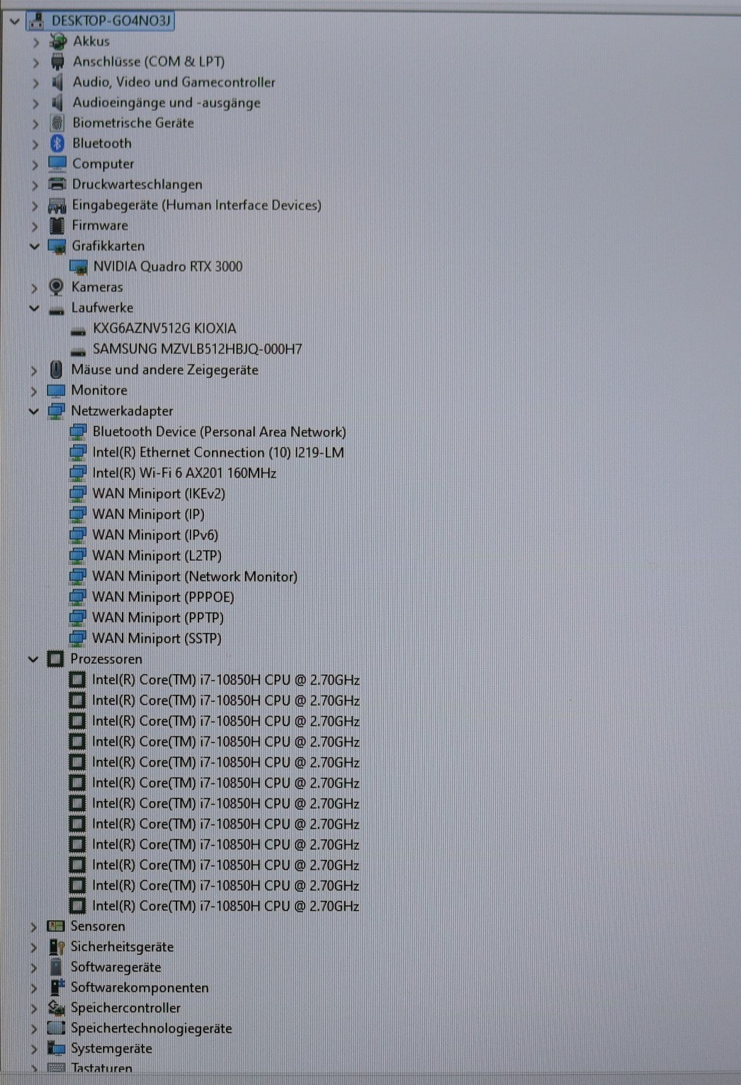 ✅ Intel Core i7-10850H (6 Kerne / 12 Threads, bis 5,1 GHz Turbo)
