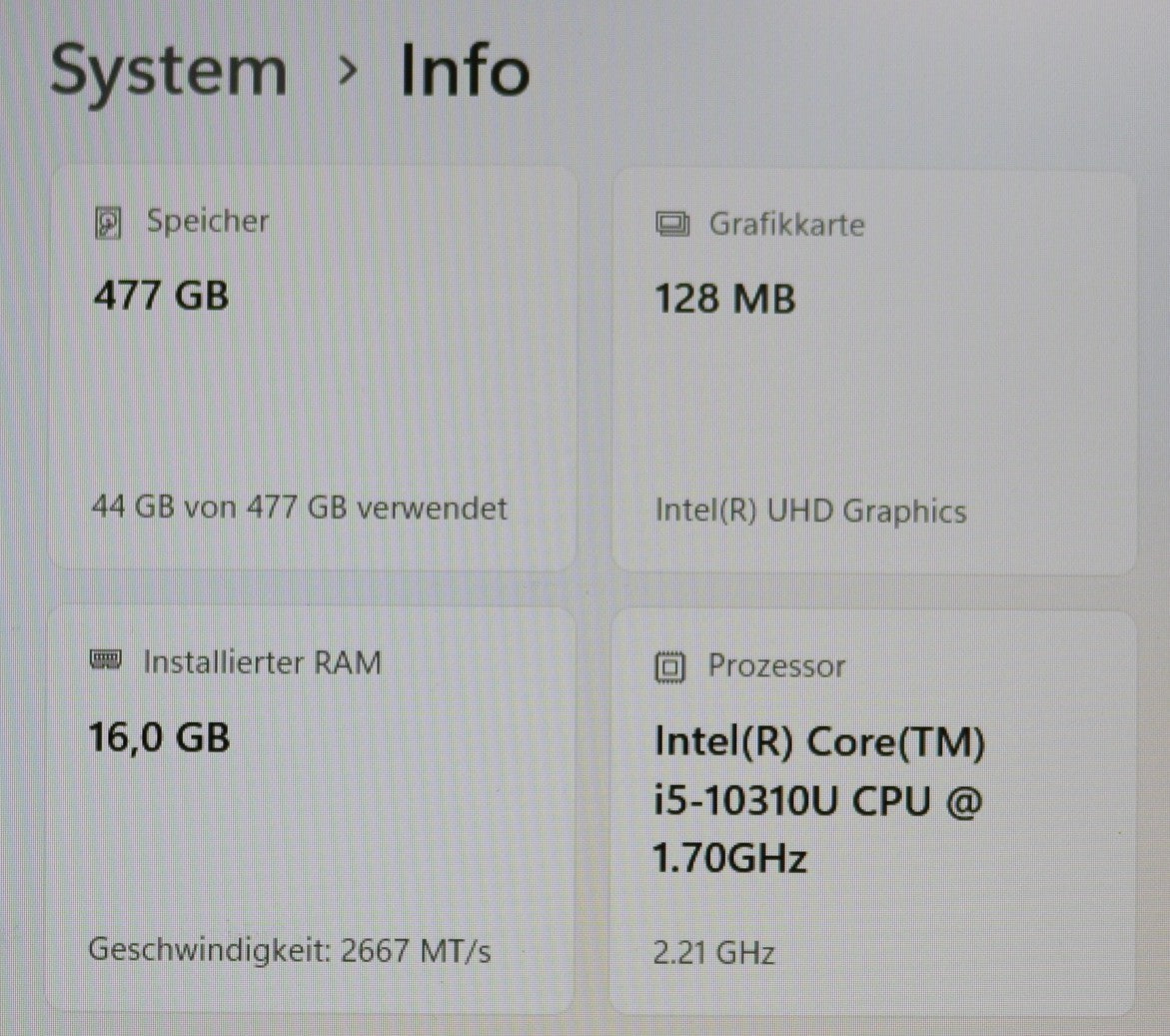 Prozessor: Intel Core i5-10310U (4× 1,7 GHz, Turbo bis 4,4 GHz)