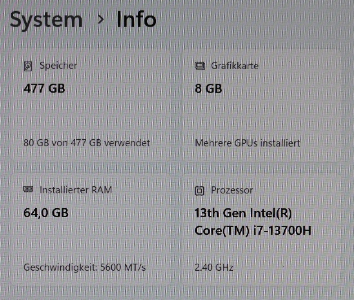 ✅ Intel Core i7-13700H – 14 Kerne / 20 Threads
