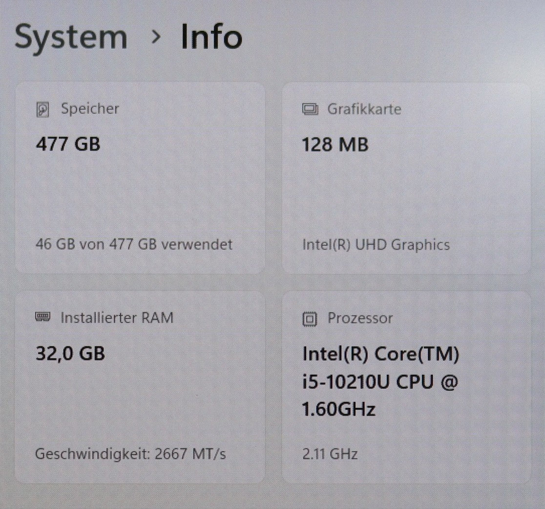 ✅ Intel Core i5-10210U (4 Kerne, 8 Threads)