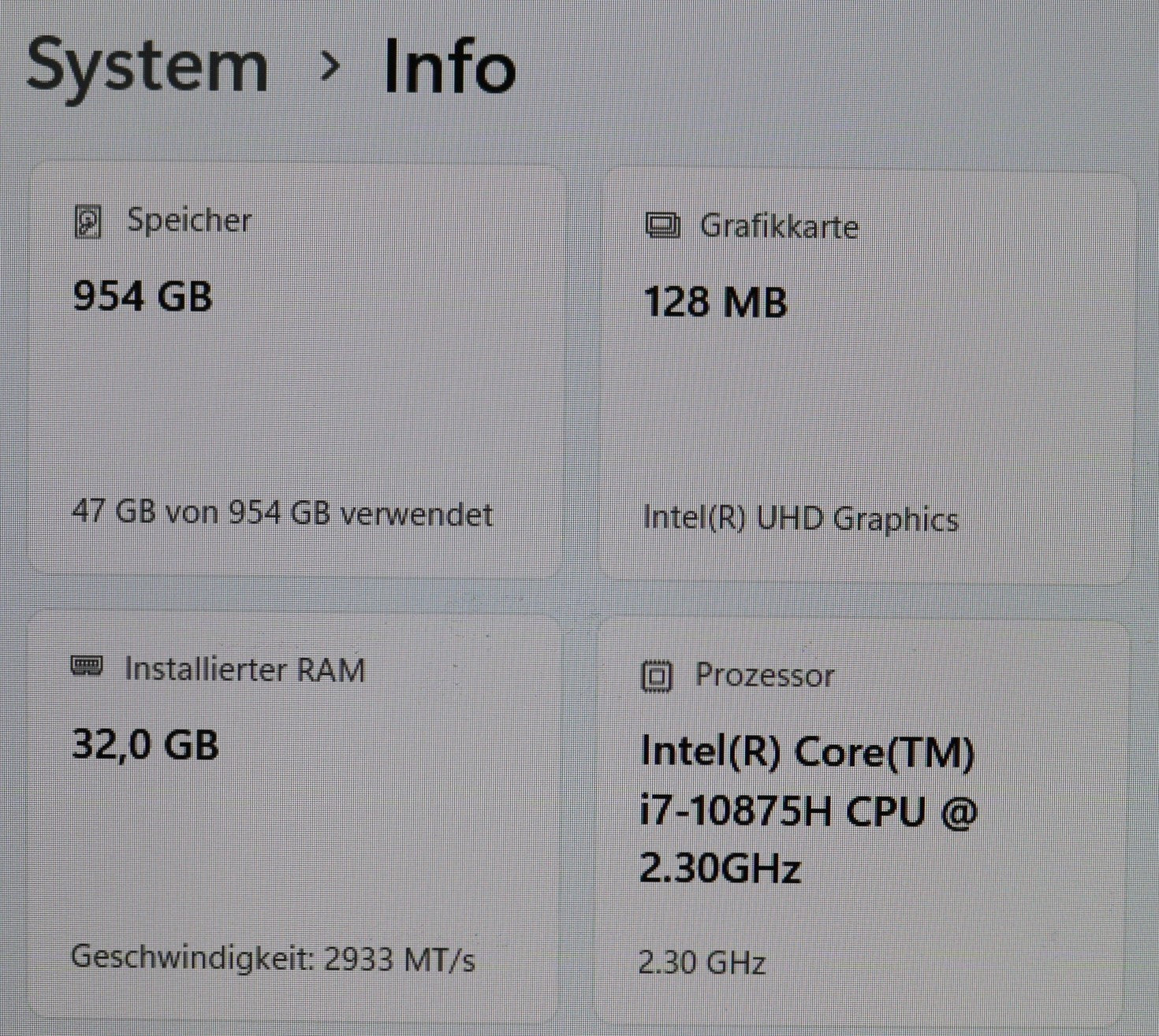 ✅ Intel Core i7-10875H (8 Kerne / 16 Threads)